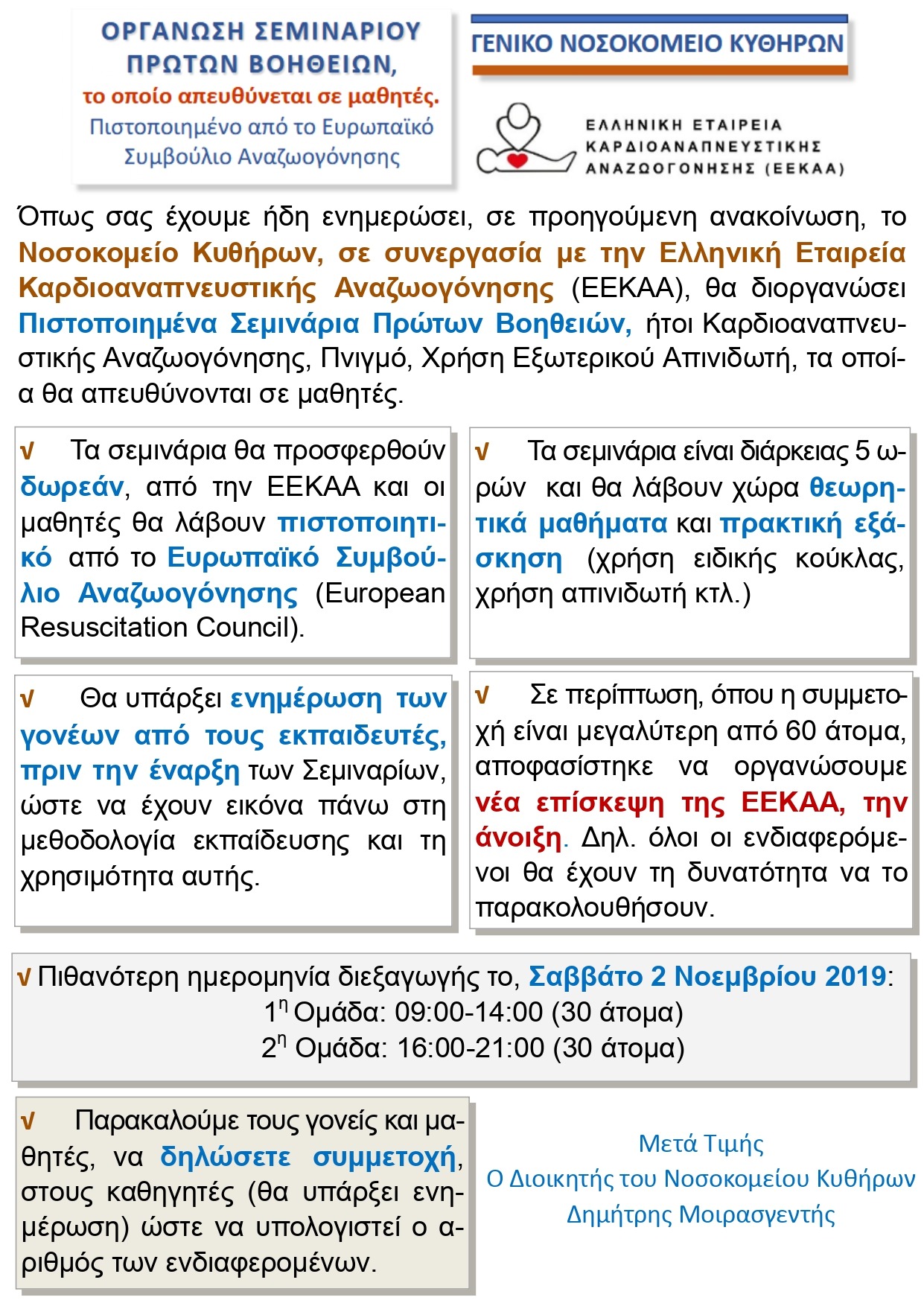 • Σεμινάριο Πρώτων Βοηθειών για Μαθητές